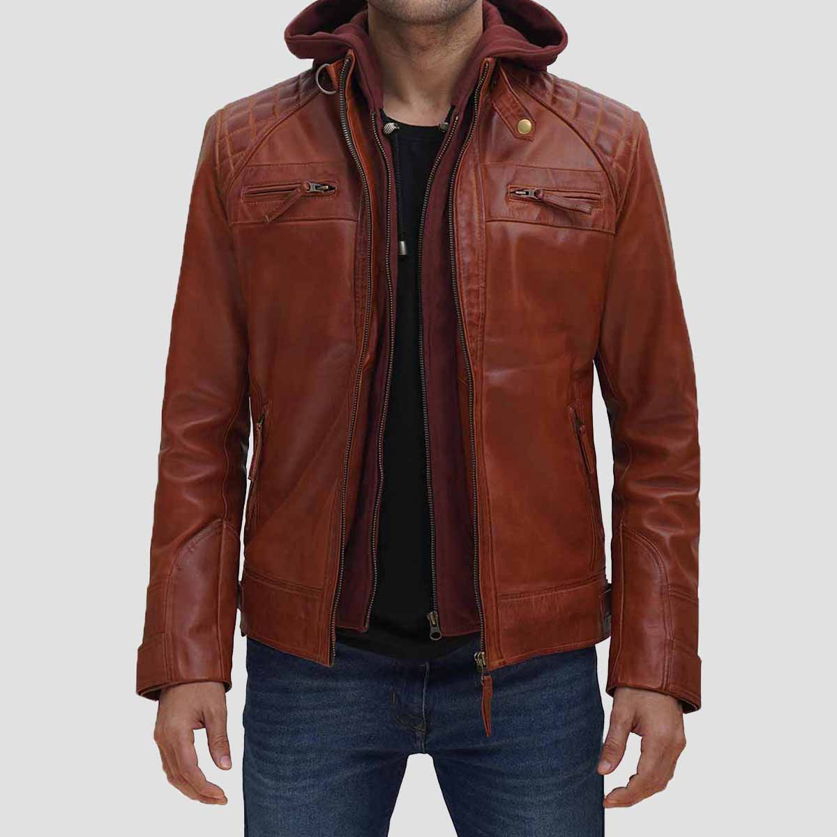 Bomter Hooded Leather Biker Jacket - Brown / XS / Sheep Leather